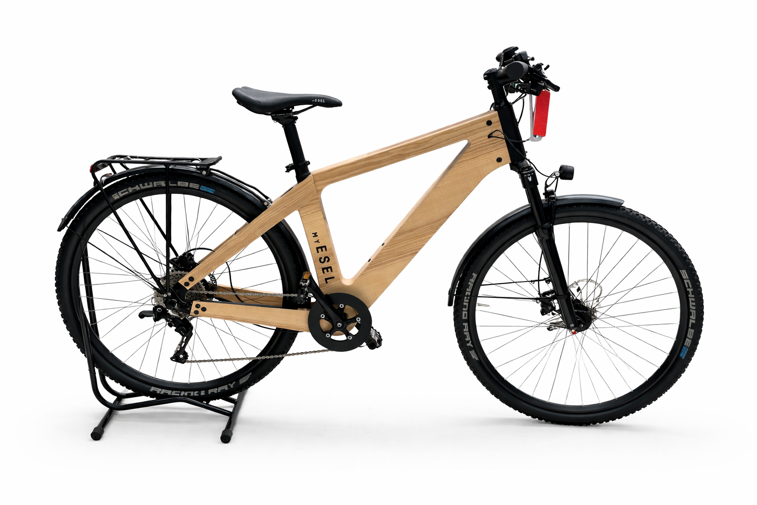 Das Herzstück des Bikes ist der charakteristische MY ESEL Holzrahmen. Er ist nicht nur ein absoluter Blickfang, sondern sorgt durch seine natürliche Dämpfung auch für ein angenehm ruhiges Fahrgefühl. Unebenheiten auf Asphalt oder Schotter werden spürbar entschärft, was besonders auf längeren Strecken ein echter Vorteil ist.